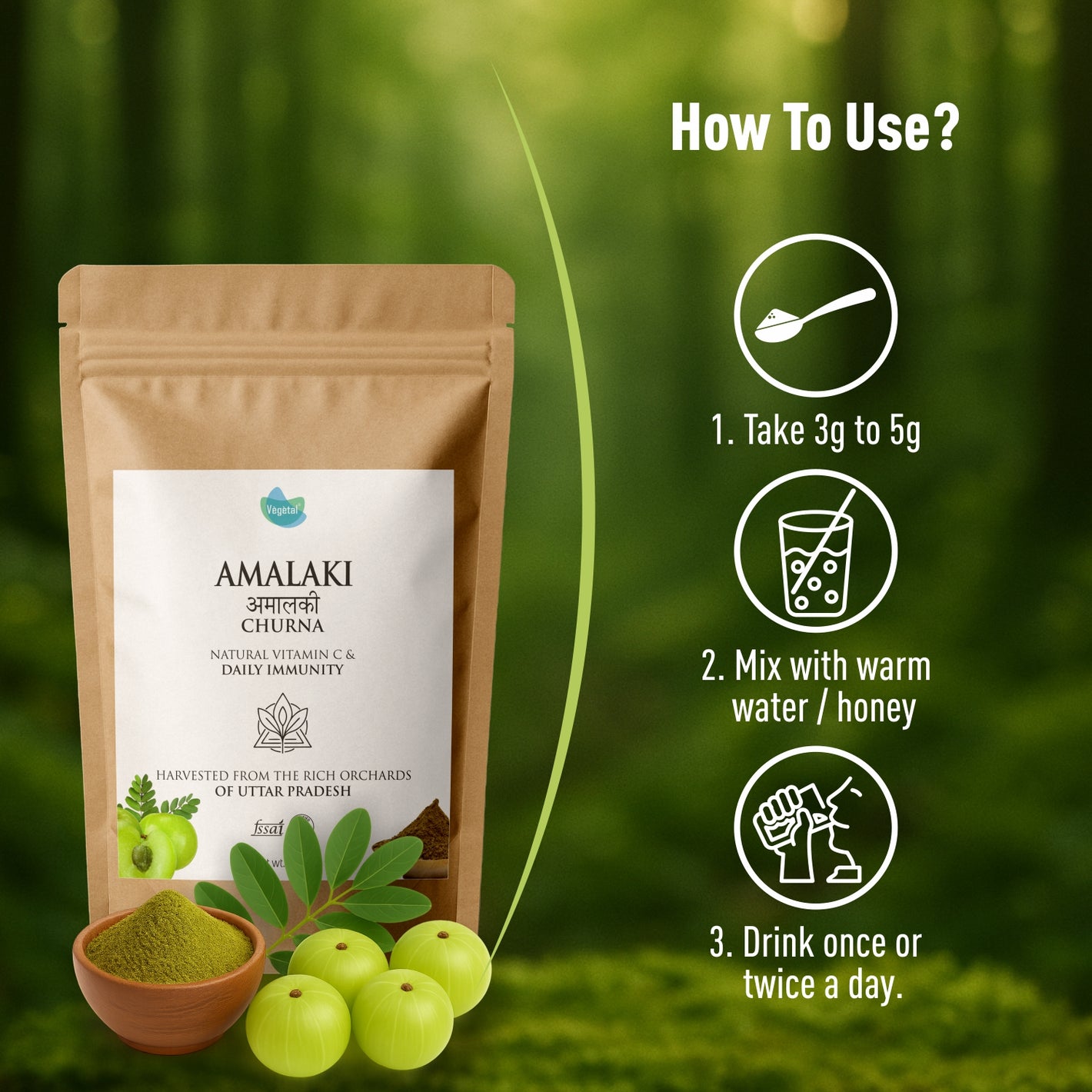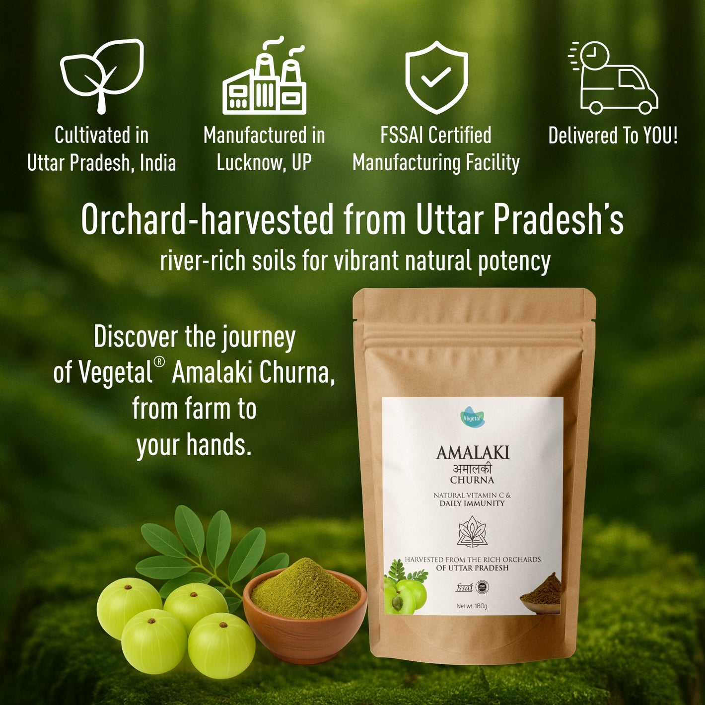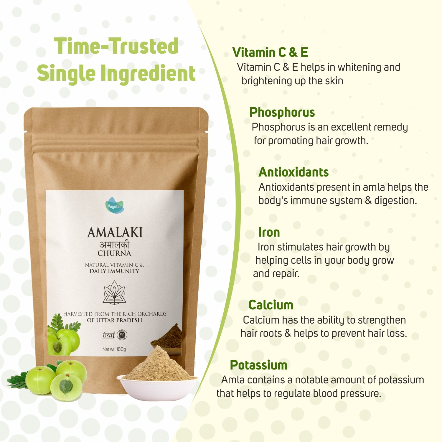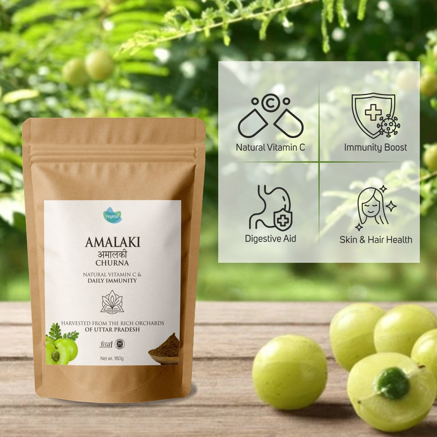 Vegetal Amalaki Churna Powder 180g | Pure Amla Powder for Immunity Boost, Natural Vitamin C, Skin & Hair Health, Detox & Digestion Support | 100% Natural & Vegan | Harvested from Uttar Pradesh Orchards