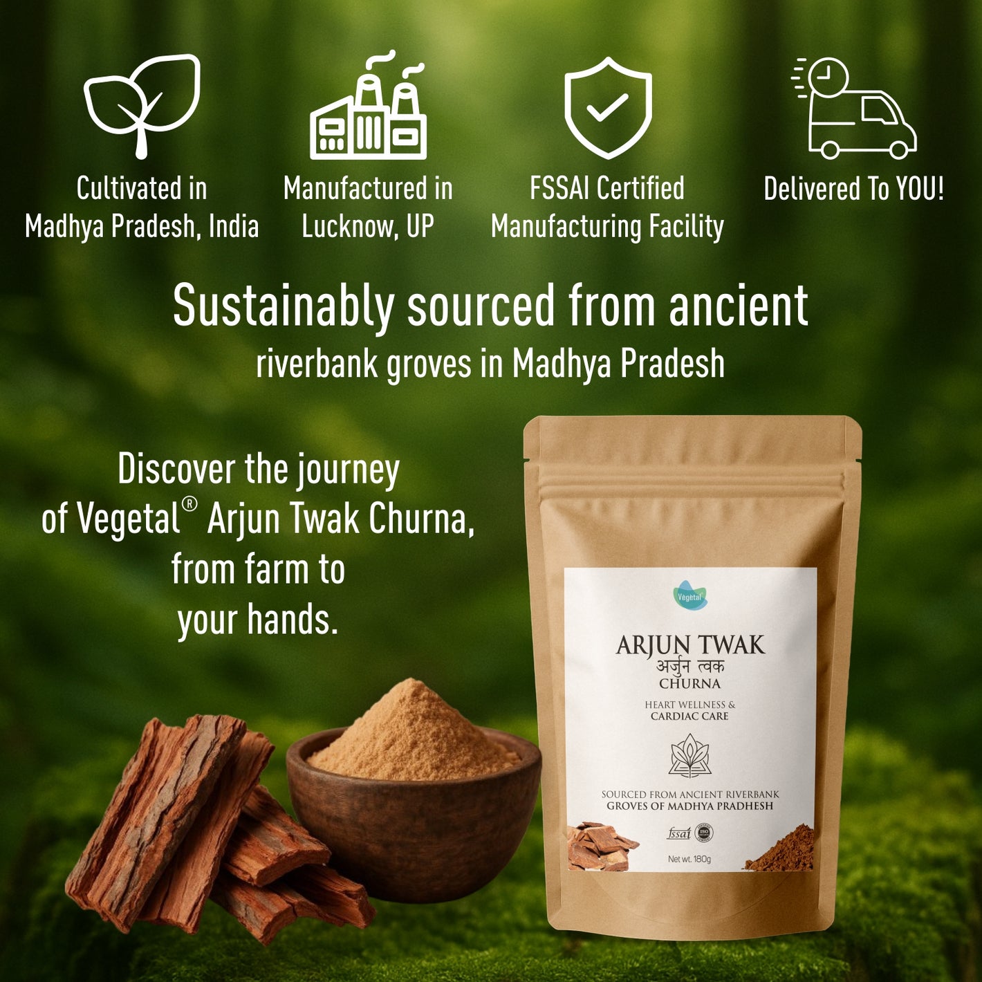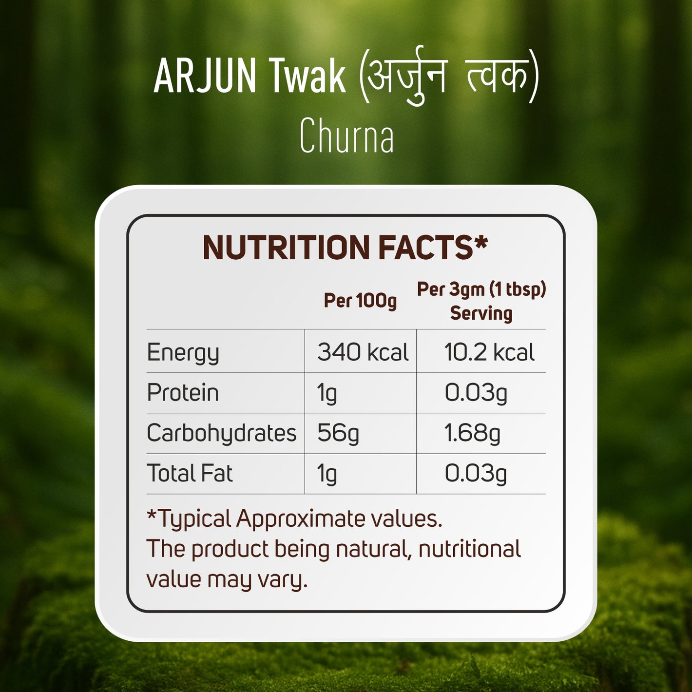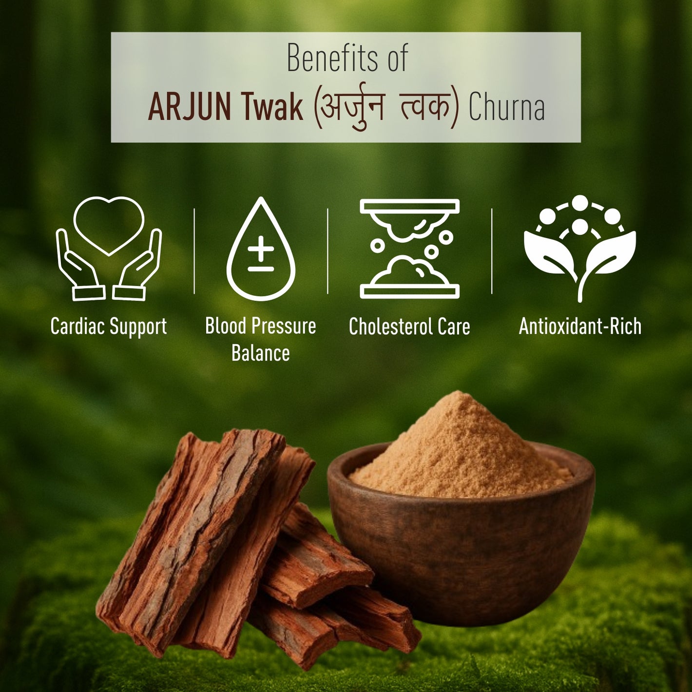 - 100% Natural Arjun Twak Churna – Made from pure Terminalia Arjuna bark, sourced from ancient riverbank groves of Madhya Pradesh.