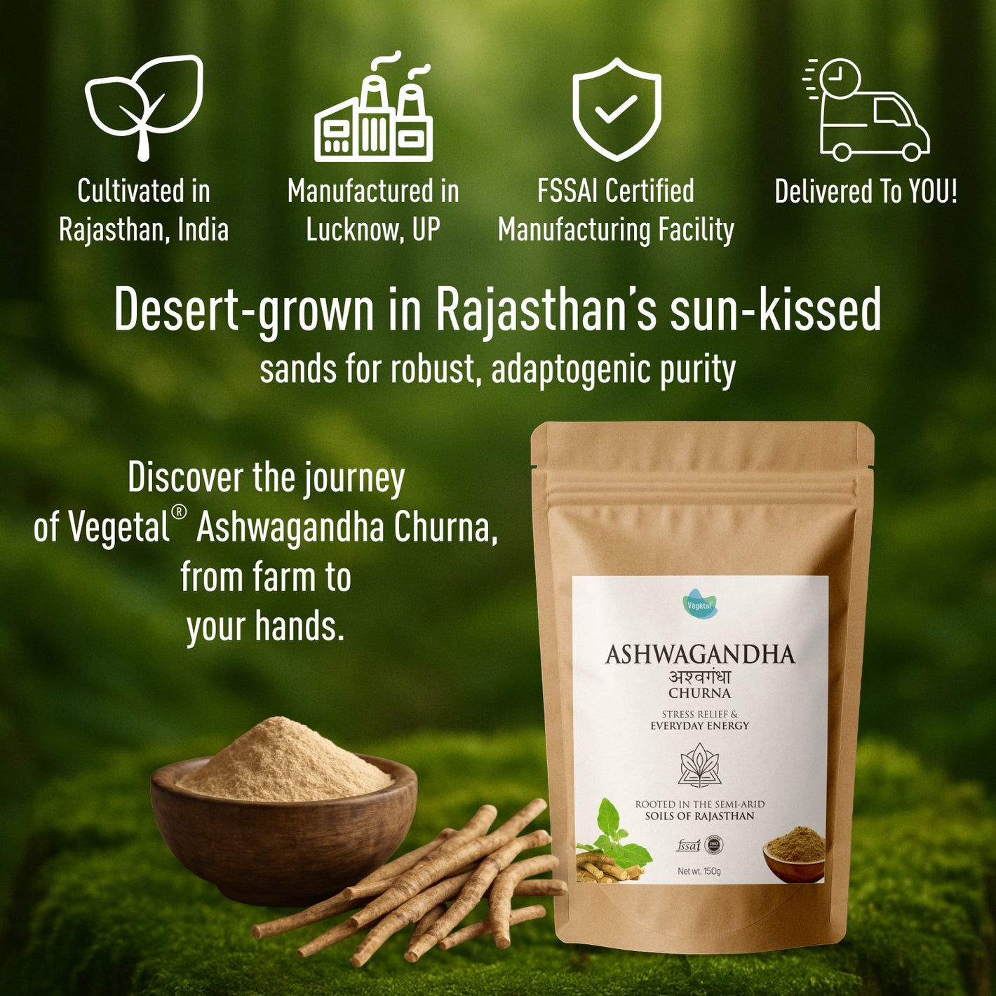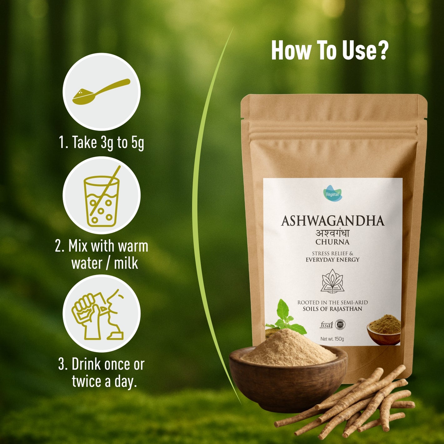 Vegetal Ashwagandha Churna | 150g | 100% Organic | Stress Relief, Strength & Stamina, Better Sleep & Hormonal Balance | No Preservatives or Artificial Colors | From Rajasthan’s Semi-Arid Soils