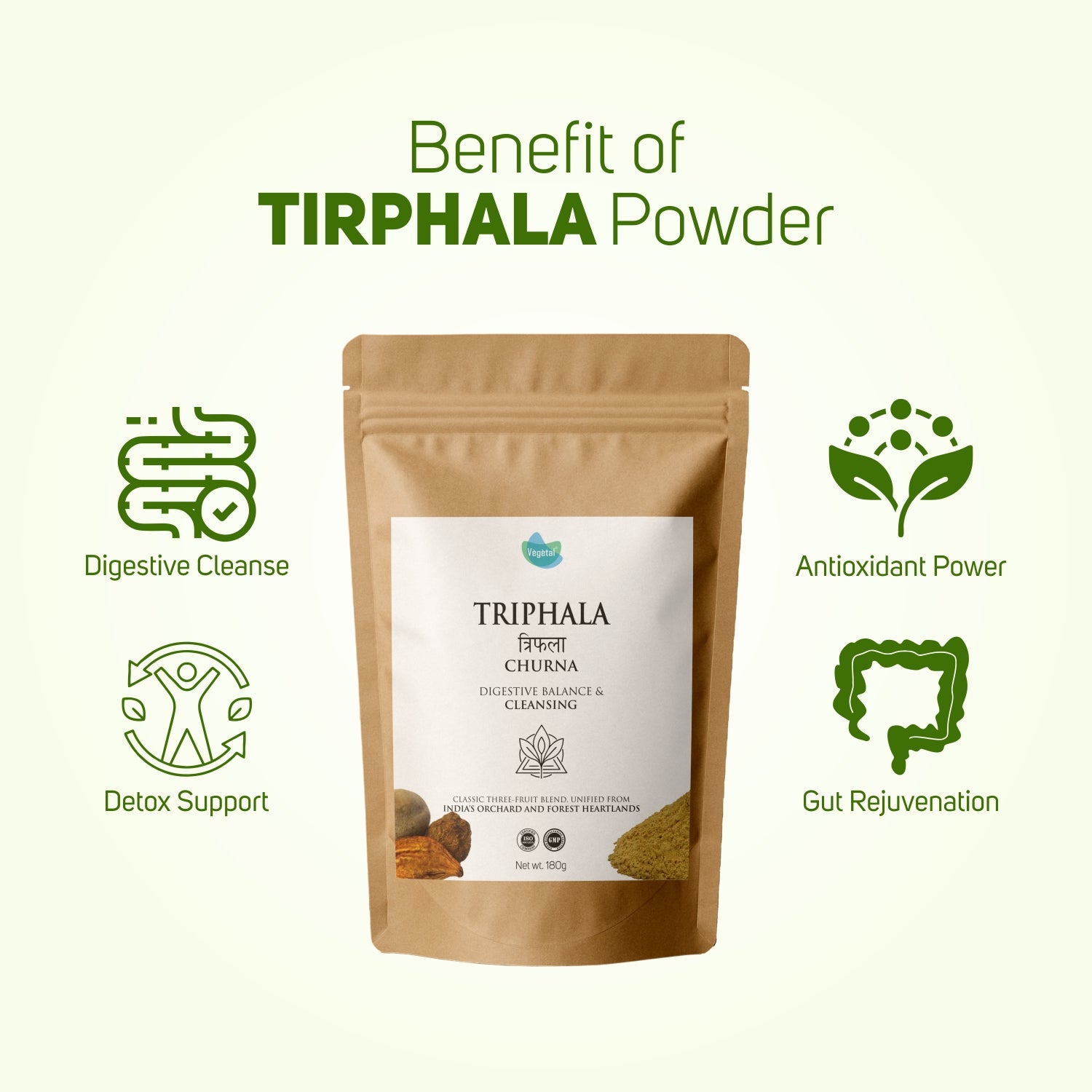 Vegetal Herbal Triphala Churna - Digestive Balance & Cleansing Powder, Ayurvedic Medicine for Gut Health & Detox Support, 180g