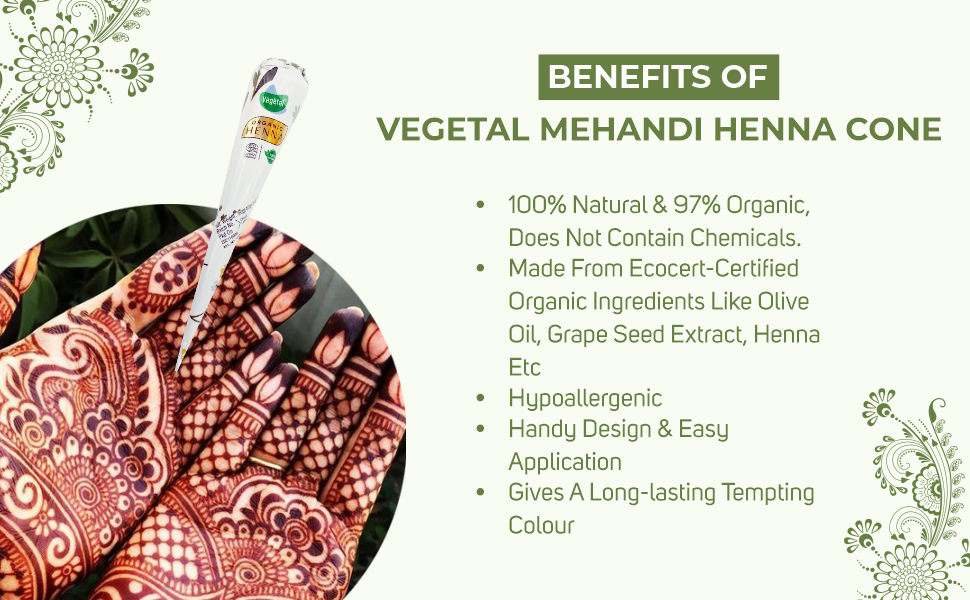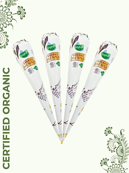 Vegetal Organic Henna cone is the Pure form of Henna Paste. Henna paste is an ancient way of temporary tattooing. It gives rich color and nourishment without any chemicals. Vegetal Henna Cone is made with Finest Henna Powder and is not added with any chemicals. -